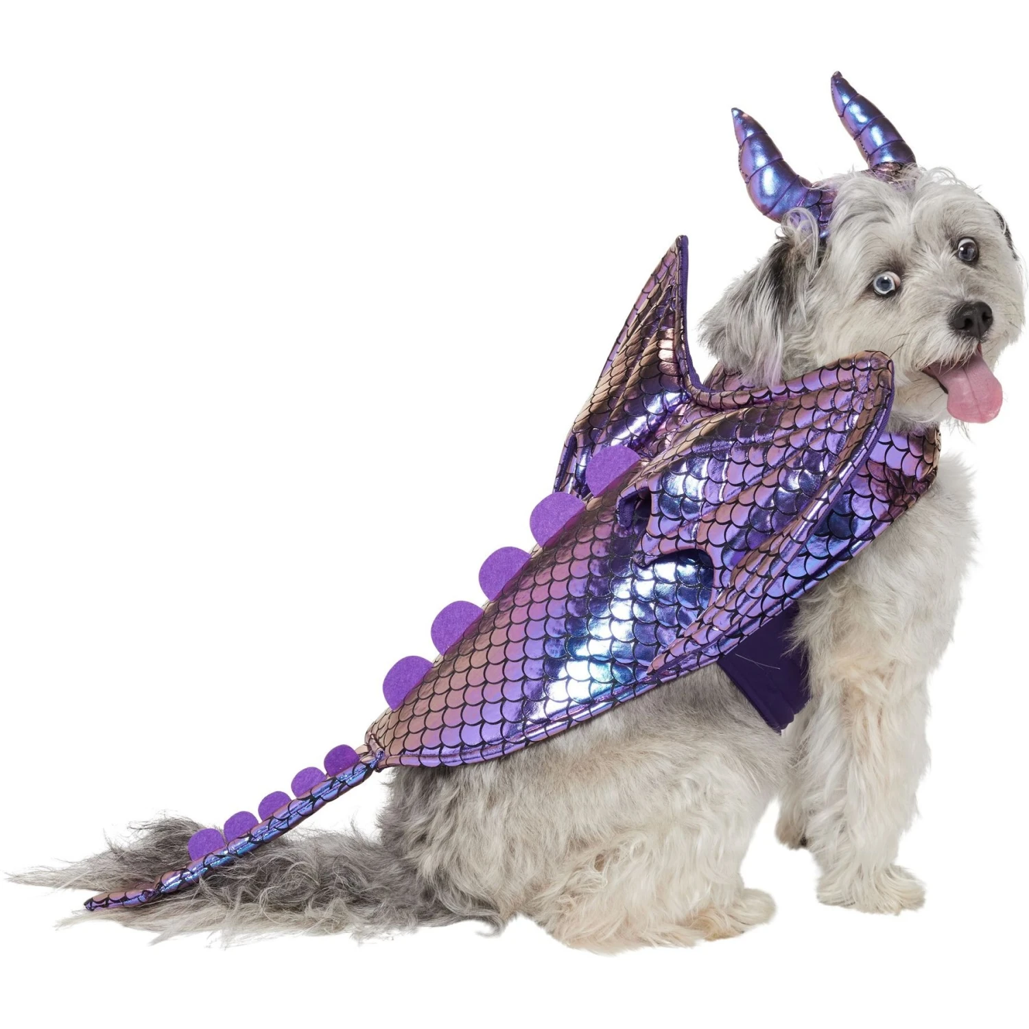- Features iridescent fabric with allover scale print, plus wired dragon wings add to the effect of your furball taking flight.